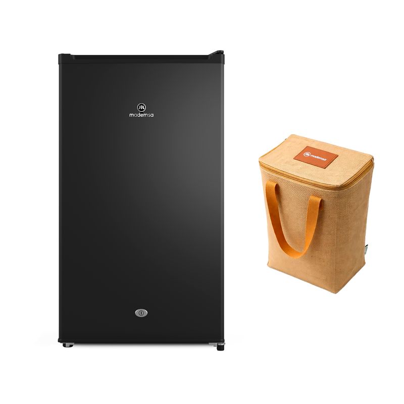 Frigobar Mademsa 90L Frío Directo con Llave y Luz Interior LED MMB91 Negro + Bolso Cooler Mademsa