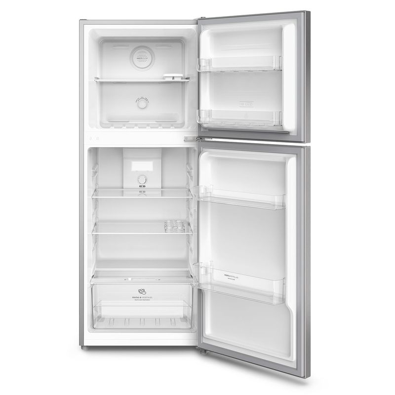 Con bandejas de vidrio templado y un acabado inoxidable, el refrigerador combina durabilidad con una estética moderna. Su interior espacioso y bien iluminado facilita la organización diaria, tanto de alimentos frescos como de comidas preparadas o bebidas frías para la familia.